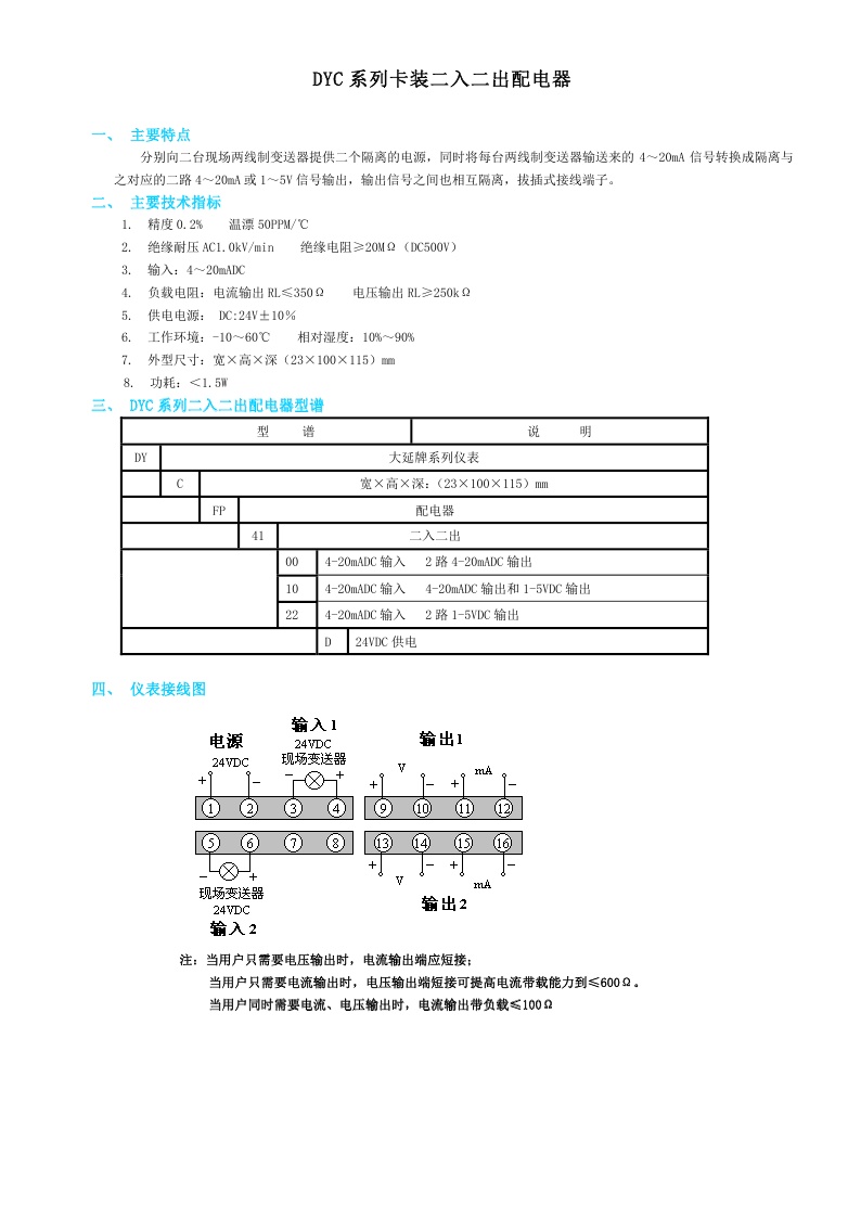DYC系列卡裝二入二出配電器