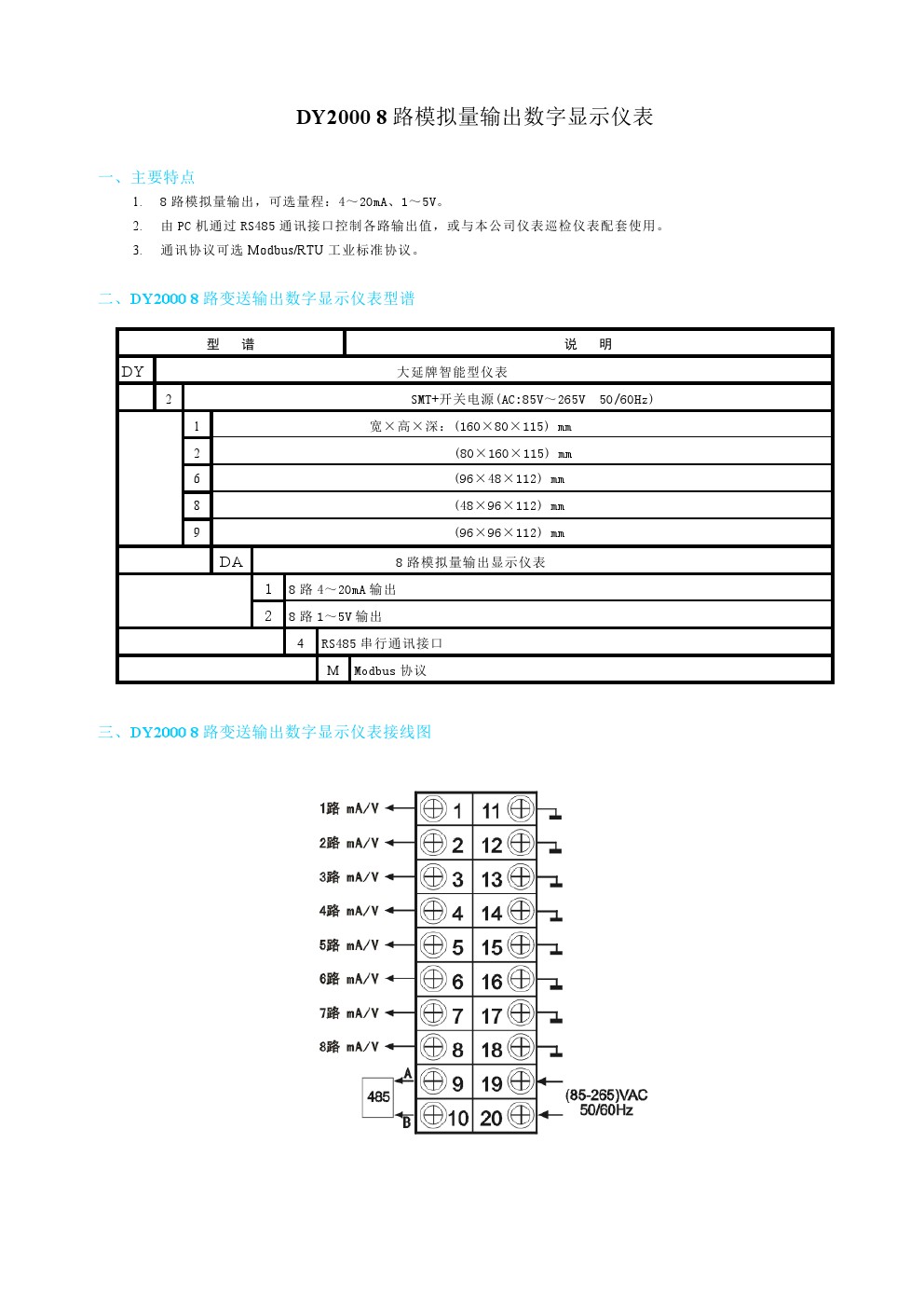 DY2000(DA)8路模擬量輸出數(shù)字顯示儀表