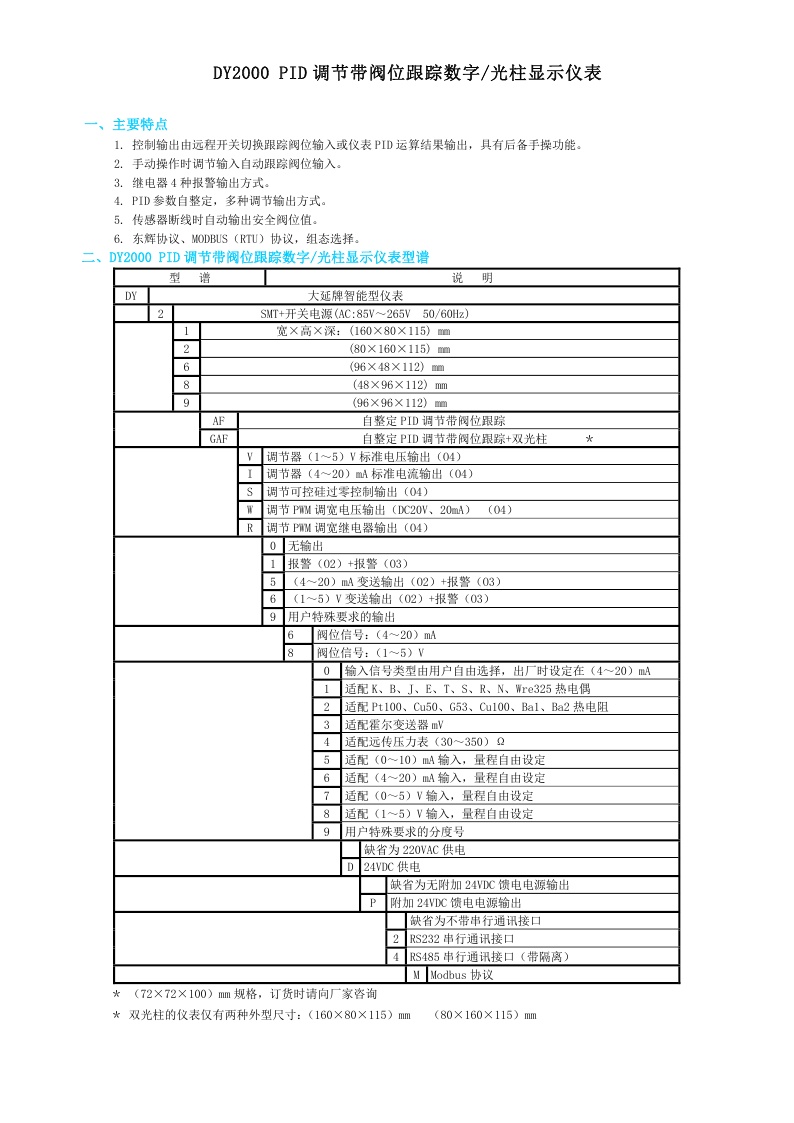 DY2000(AF)PID調(diào)節(jié)帶閥位跟蹤數(shù)字/光柱顯示儀表