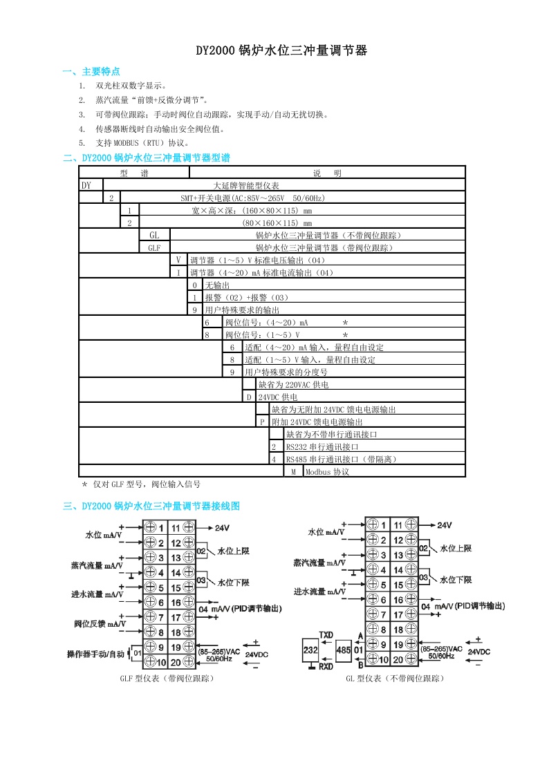 DY2000(GL/GLF)鍋爐水位三沖量調(diào)節(jié)器