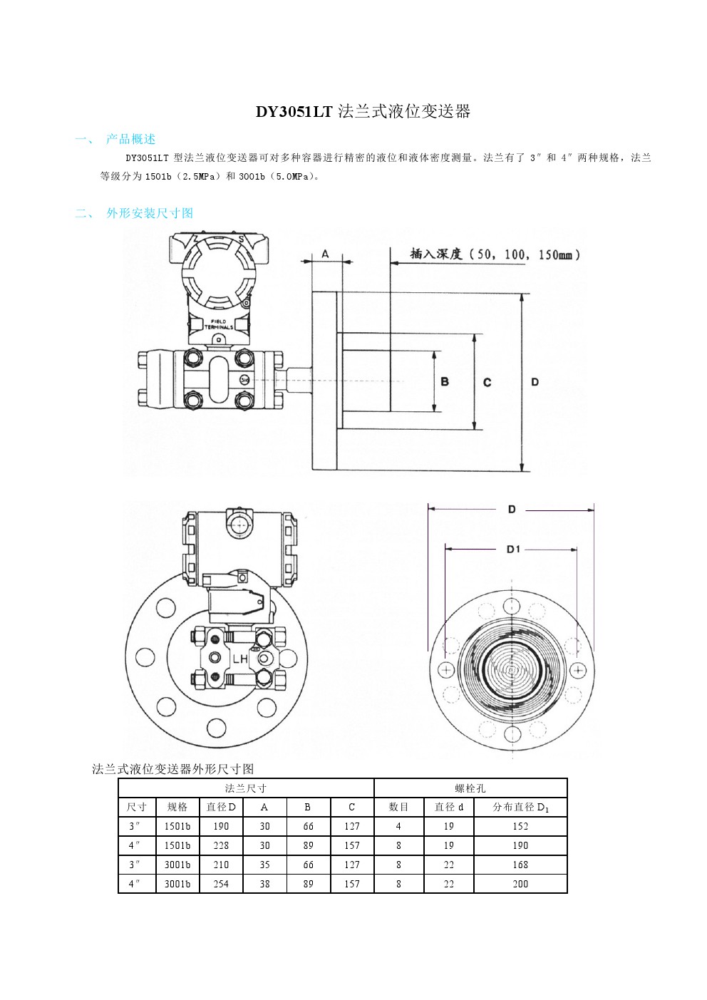DY3051LT法蘭式液位變送器