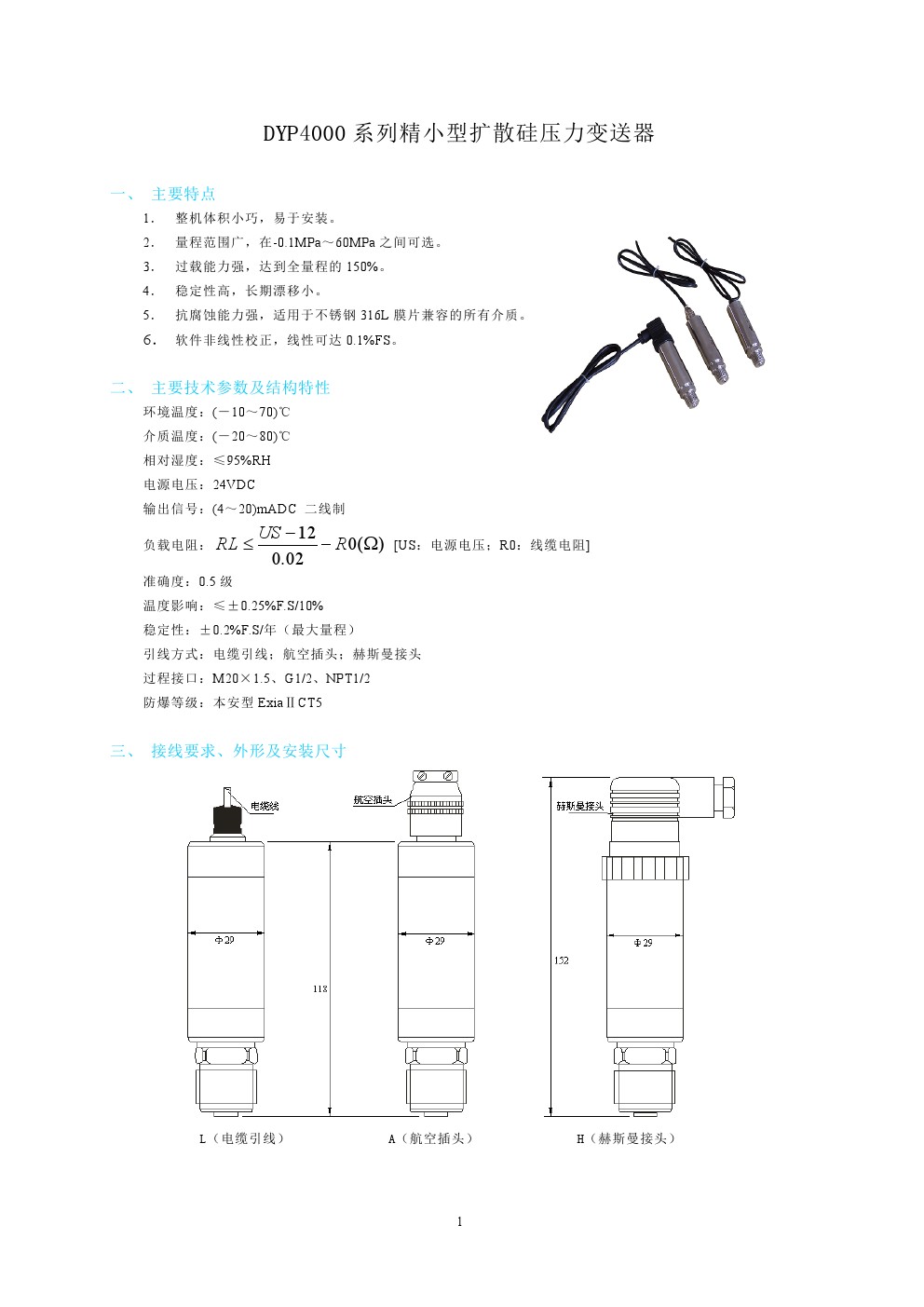 DYP4000系列精小型擴(kuò)散硅壓力變送器
